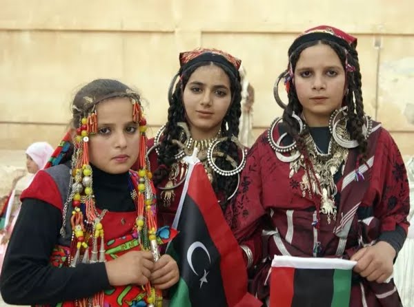 اللغة العربية هي اللغة الوطنية في ليبيا، وعلى الرغم من أن الحكومة لا تشجع رسميًا على استخدام لغات أخرى، فإن اللغة الإنجليزية هي اللغة الثانية الأكثر شيوعًا ويتم تدريسها بانتظام في المدرسة، وأسماء الإناث الليبية شيوعا هي عائشة، فاطمة، آمنة، خديجة وأسماء، وأسماء الذكور الليبية الأكثر شيوعًا محمد، وعلي، يوسف، إبراهيم، ومختار.